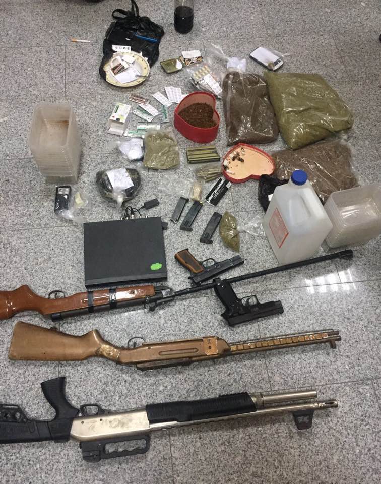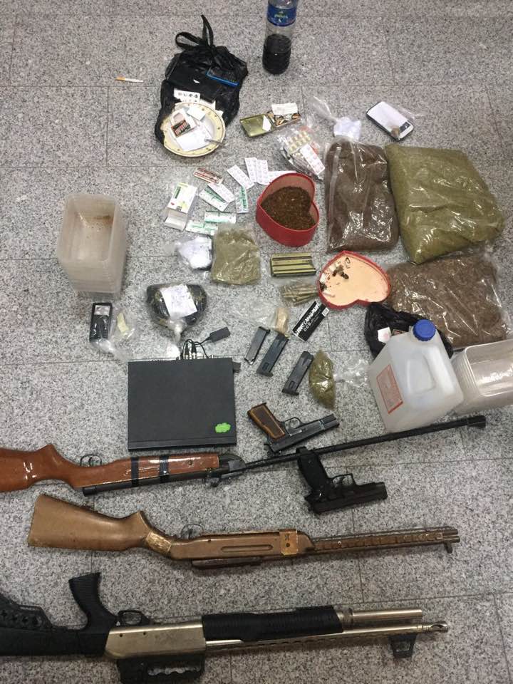 ادارة مكافحة المخدرات تنفذ سلسلة من المداهمات في شرق عمان و البادية الوسطى وتلقي القبض على عدد من تجار ومروجي المواد المخدرة وتضبط كميات كبيرة من المواد المخدرة المختلفة اضافة الى اسلحة وعتاد و مجموعة من المركبات المسروقة وغير المسجلة .