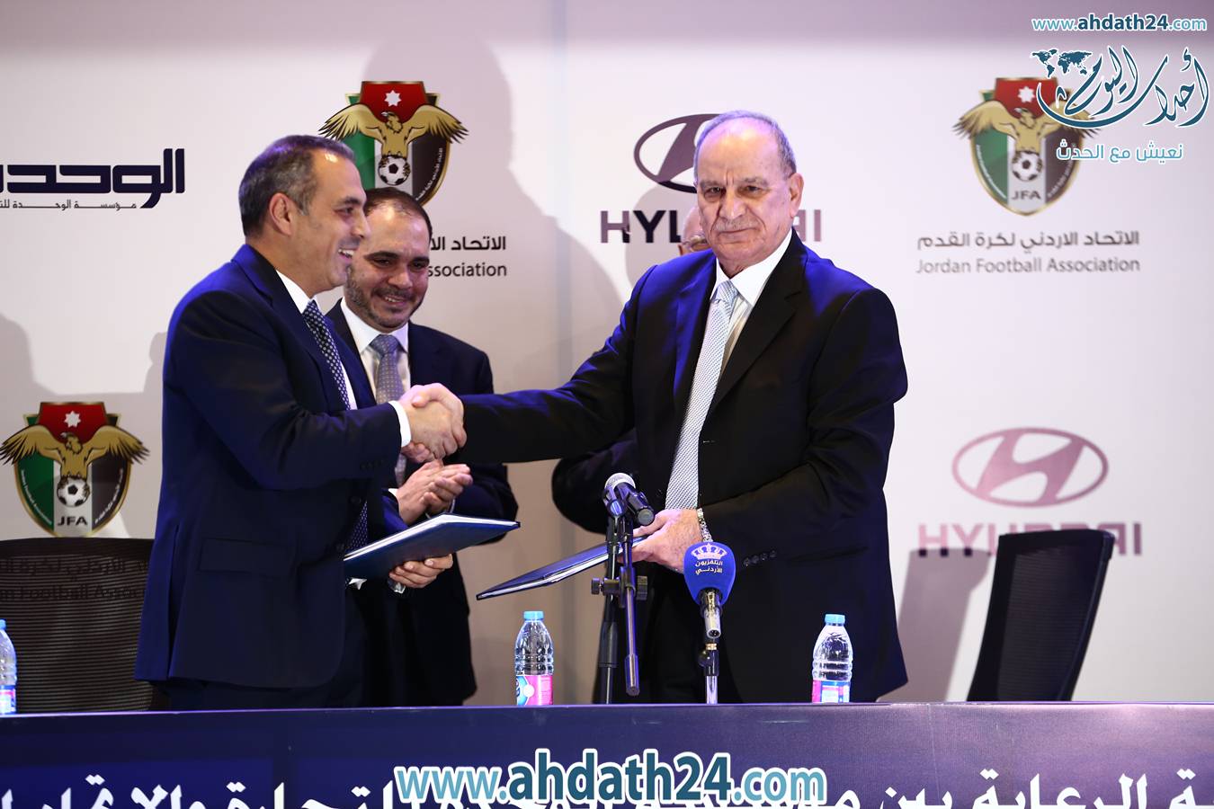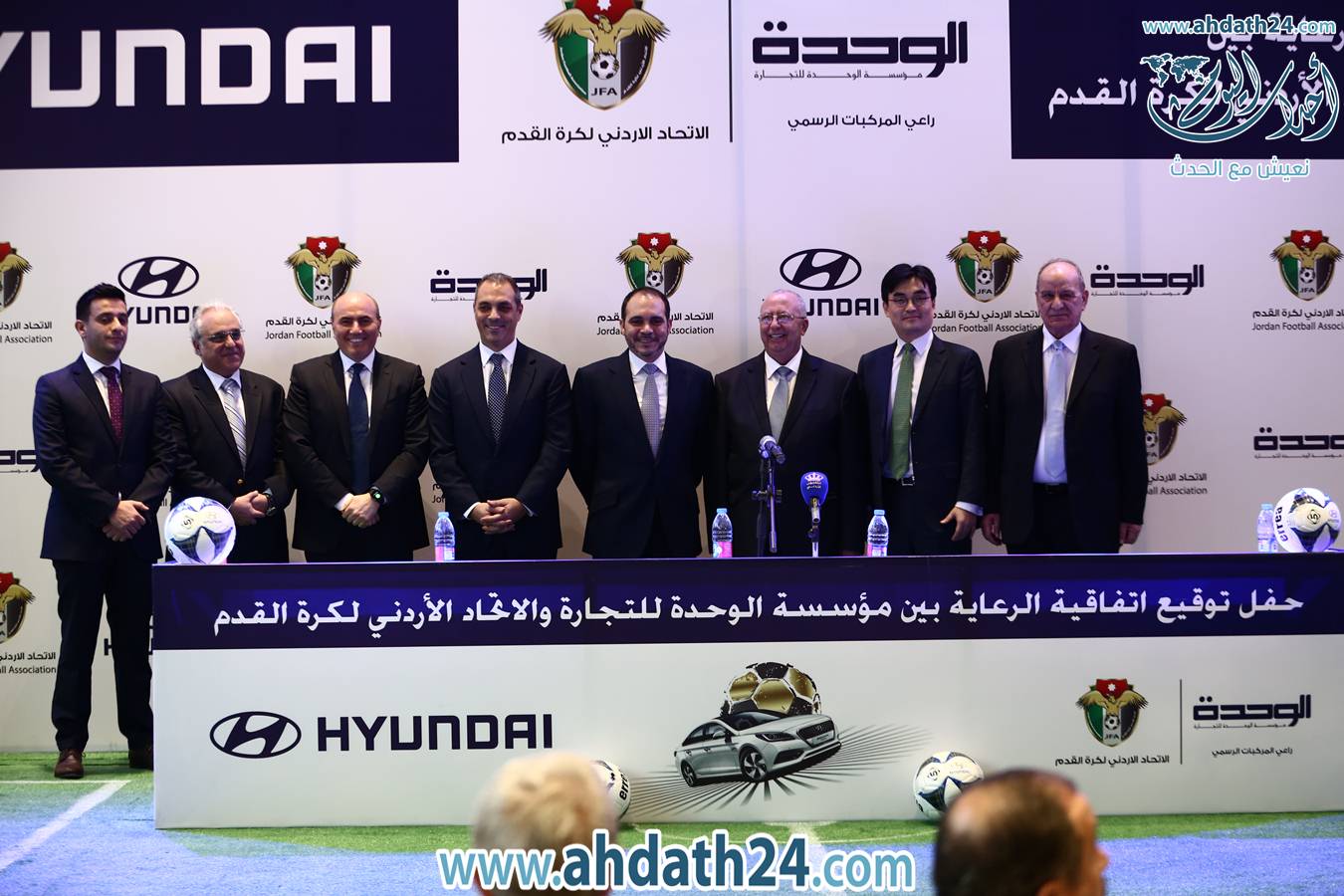 وقع اتحاد كرة القدم أمس مع مؤسسة الوحدة للتجارة (هيونداي) اتفاقية رعاية تمتد لمدة أربع أعوام، برعاية سمو الأمير علي بن الحسين رئيس الهيئة التنفيذية للاتحاد كرة القدم.
