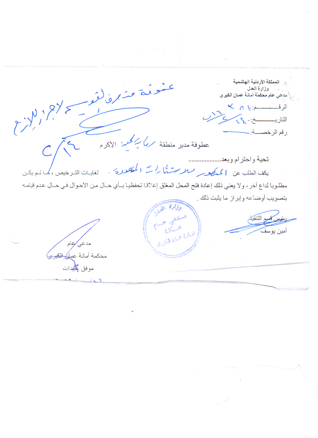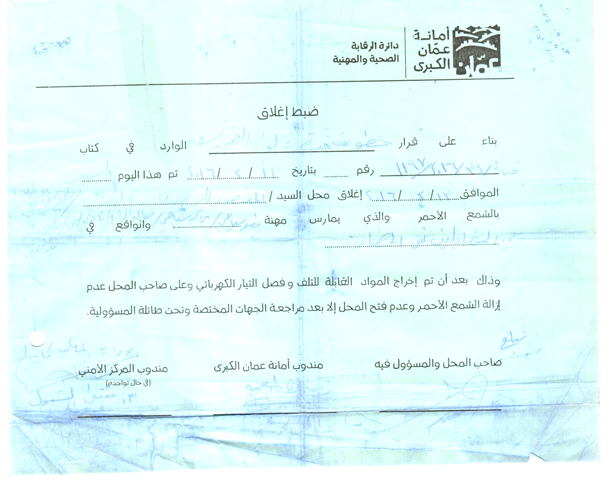 نود بدايةً التعليق على رد أمانة عمان على الحلقة الأولى والتي تم نشرها من طرفنا بتاريخ 22/1/2017 حيث صرحت مديرة الرقابة الصحية بتاريخ 23/1/2017 أن إغلاق إفرست جاء بقرار من المحكمة ، وهذا التصريح الصادر عن مديرة دائرة الرقابة الصحية في أمانة عمان هو افتراء بحت وعار عن الصحة تماماً ويُقصد به التضليل الفاضح ، والحقيقة المؤكـــدة ومــــن واقع المســــتندات والوثائق أنه تم إغلاق مبنى إفرست تحفظياً ( احترازياً ) من قبل دائرة الرقابة الصحية بتاريخ 13/2/2016 بواقع ضبط إغلاق المؤرخ 13/2/2016 ويحمل توقيع إدارة شركة إفرست عليه حسب الأصول وتم إغلاق مبنى إفرست كاملاً بالإستناد إلى ضبط الإتلاف المؤرخ 9/2/2016 فقط ويحمل كذلك توقيع إدارة شركة إفرست عليه حسب الأصول ، ولم يتم التطرق نهائياً لوجود و/أو سريان ترخيص مهني للمبنى من عدمه . وتم أيضاً تحديد موعد جلسة بمحكمة أمانة عمان لتاريخ 9/3/2016 من واقع مذكرة تبليغ مختصة بالمشتكى عليه صادرة من محكمة أمانة عمان الكبرى بتاريخ 9/2/2016 وتحمل الرقم 638633 وتحمل كذلك توقيع إدارة شركة إفرست عليه حسب الأصول ، ولم يتم تحرير أي تقرير مخالفة نهائياً داخل مبنى إفرست بناءً على ضبط الإتلاف المذكور أعلاه ، وفي صباح اليوم التالي للإغلاق مباشرة بتاريخ 14/2/2016 تم من طرفنا إحضار كف طلب من محكمة أمانة عمان حسب الأصول إلا أن مديرة دائرة الرقابة الصحية وبصفتها فوق القانون رفضت الإمتثال نهائيا ًإلى أمر المحكمة بكف الطلب وفك الشمع وإعادة فتح المبنى ، وقالت وبحضور زميل لها بالأمانة أنه لو أحضرتم كف طلب من الديوان الملكي فلن أزيل الشمع الأحمر إلا بإشعار أو رسالة نصية من عقل بلتاجي شخصيا تفيدني بإزالة الشمع الأحمر وأن مشكلتكم ليست معي وإنما مع عقل بلتاجي شخصياً ، وبقي هكذا مبنى إفرست مغلقاً بشكل مخالف للقانون . وإنه لشيء مخجل جداً أن يصدر وعلى الملأ رد صحفي عن بعض مدراء دوائر الأمانة مغايراً للحقيقة وللواقع وللمستندات !!!!!
