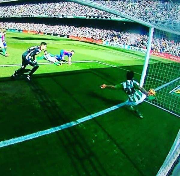 وسجلت الحادثة في الدقيقة 77 من المباراة التي أقيمت ضمن المرحلة الـ20 بالليجا، عندما دخلت الكرة لمسافة نصف متر داخل مرمى ريال بيتيس في الوقت، الذي كان برشلونة متأخرًا فيه بهدف نظيف.