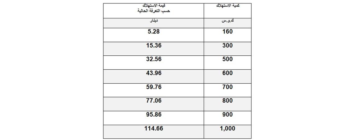 يشار في هذا السياق الى أن بإمكان المواطنين الاسترشاد بقيم فواتيرهم كما في الصورة المرفقة