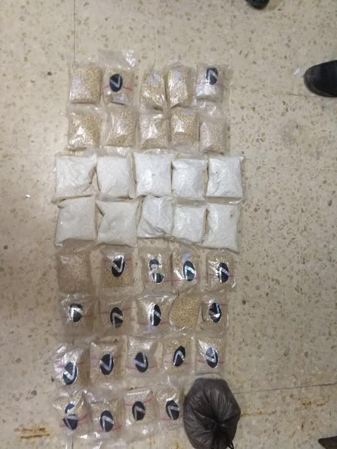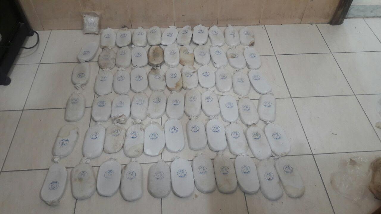 كما والقي القبض في احد المعابر الحدوية الاخرى على احد الاشخاص وبحوزته كيلو وربع من مادة الحشيش المخدر اثناء محاولته ادخالها للمملكة بعد ان اخفاها داخل امتعته بطريقة غير ظاهرة .