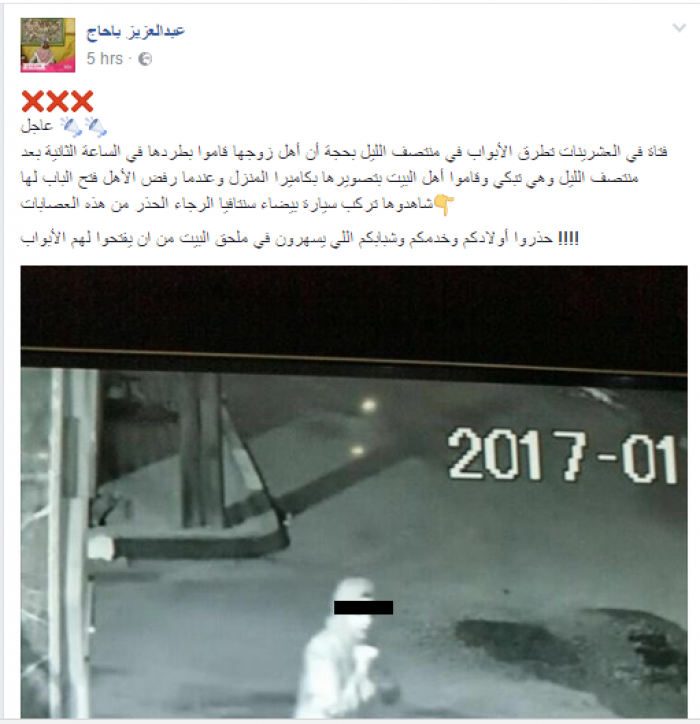 وكان ناشطون قد تداولوا عبر وسائل التواصل الاجتماعي صورا ملتقطة عبر كاميرات إحدى المنازل لفتاة عشرينية تظهر وهي تمشي ليلا.