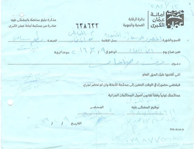 وبعدها قام المهندس بتحرير ضبط إتلاف بإسم (مطعم سياحي) فئة مطعم والموثق بتاريخ 9/2/2016 ويحمل توقيع إدارة إفرست حسب الأصول، وحرّر أيضا مذكرة تبليغ مختصة بالمشتكى عليه ذات الرقم 638633 وتحمل كذلك توقيع إدارة إفرست حسب الأصول صادرة عن محكمة أمانة عمان الكبرى عيًن فيها موعد تاريخ الجلسة يوم 9/3/2016 بسبب وجود مواد غذائية تالفة فقط لا غير ، ولم يتم التطرق نهائياً إلى أن مبنى إفرست غير مرخص أو أن رخصة مهن المبنى غير سارية المفعول أو أن هناك قرارات من اللجنة اللوائية تفيد بإغلاقه لعدم وجود تراخيص ولم يحرر أي إنذار بهذا الشأن نهائياً !!!!!، وطلب موظف الرقابة من إدارة المطعم إتلاف المواد المذكوره أعلاه فقامت الأخيرة على الفور بإتلافها وأمام موظف الرقابة ، ولم يقم المهندس بتحرير أي إشعار بوجود سلبيات حسب الأصول المتبعة ولم يحرر أي تقرير مخالفة لقانون الحرف والصناعات قبل مغادرته للمبنى ولم يطلب المهندس من إدارة إفرست التوقيع على أي تقرير من هذا النوع أبداً ولم يقم المهندس طبقاً للقانون بتحرير أي إنذار يفيد بعدم وجود رخصة مهن و/أو عدم سريانها ولم يتطرق لذلك نهائياً بالرغم من مشاهدته لرخصة مهن المبنى وذلك لأن المهندس يعلم أنه غير مخول بذلك طبقاً للقانون !!!