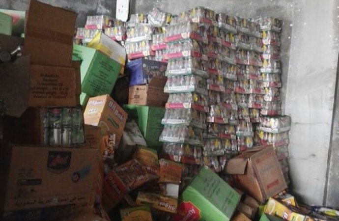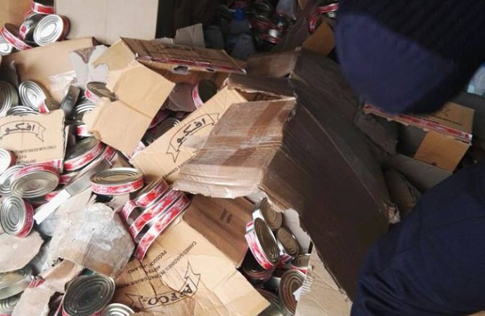 وقال بيان لدائرة الجمارك إن المواد المضبوطة كانت عبارة عن كميات ضخمة من السردين المعلب، والطن، والمرتديلا، والعصير، والشاي.