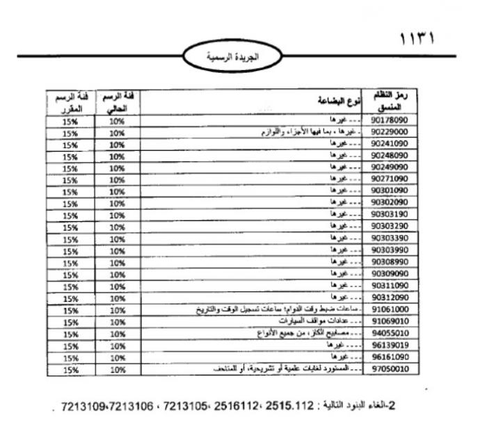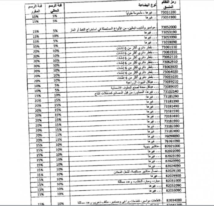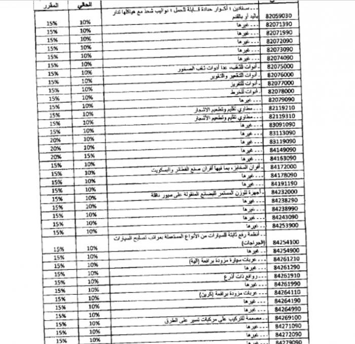 التفاصيل الكاملة للمواد والسلع التي طالها "الرفع"