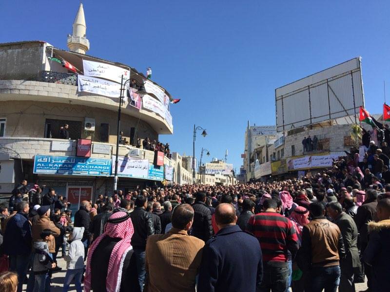 شارك المئات من محافظة الكرك السبت، في وقفة تضامنية مع النائب صداح الحباشنة هاتفين له بعد كلمته التي وجهه لرئيس الوزراء هاني الملقي في جلسة مناقشة رفع الاسعار الاسبوع الماضي .