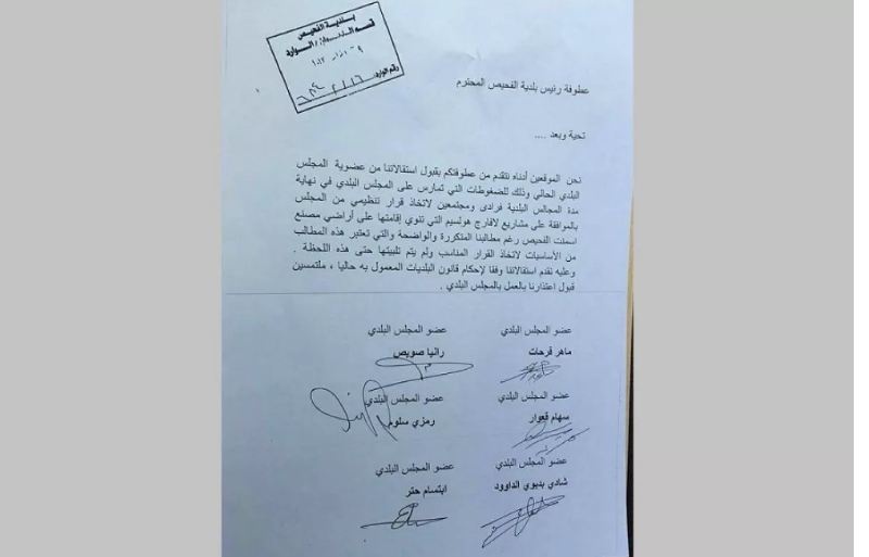 استقالة (6) اعضاء من مجلس بلدي الفحيص -وثيقة