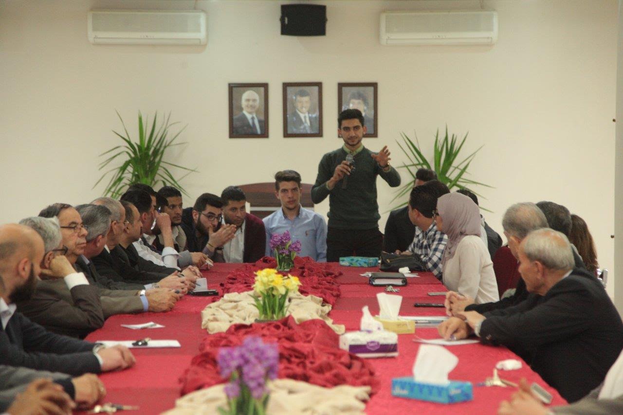 ودار حوار بين أعضاء مجلس اتحاد الطلبة وعمداء الكليات ومدراء الدوائر الإدارية في الجامعة حول الخدمات التي تقدمها الجامعة وسبل الارتقاء بالعملية التعليمة التي تمثل المحور الأساسي لسياسة الجامعة.