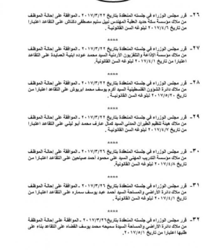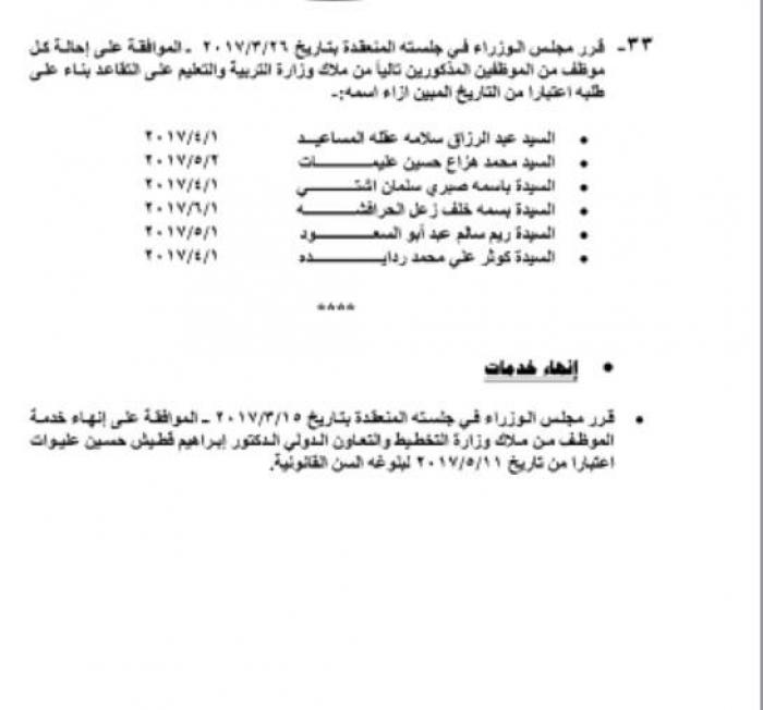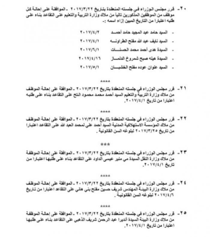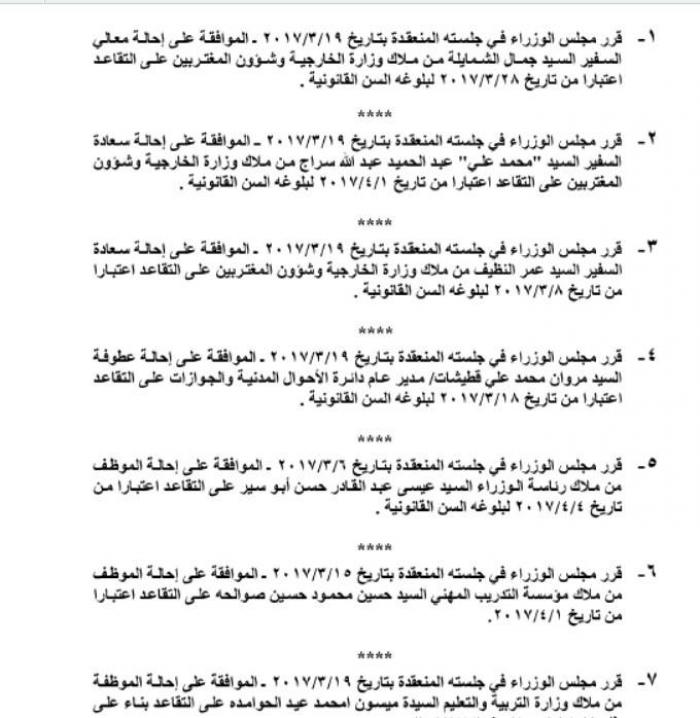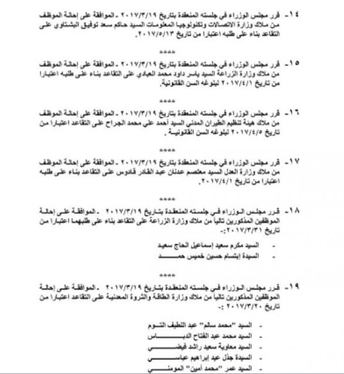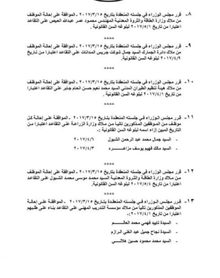 كما وتم احالة عدد من الموظفين العاملين في المؤسسات الحكومية الي التقاعد.