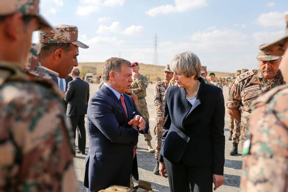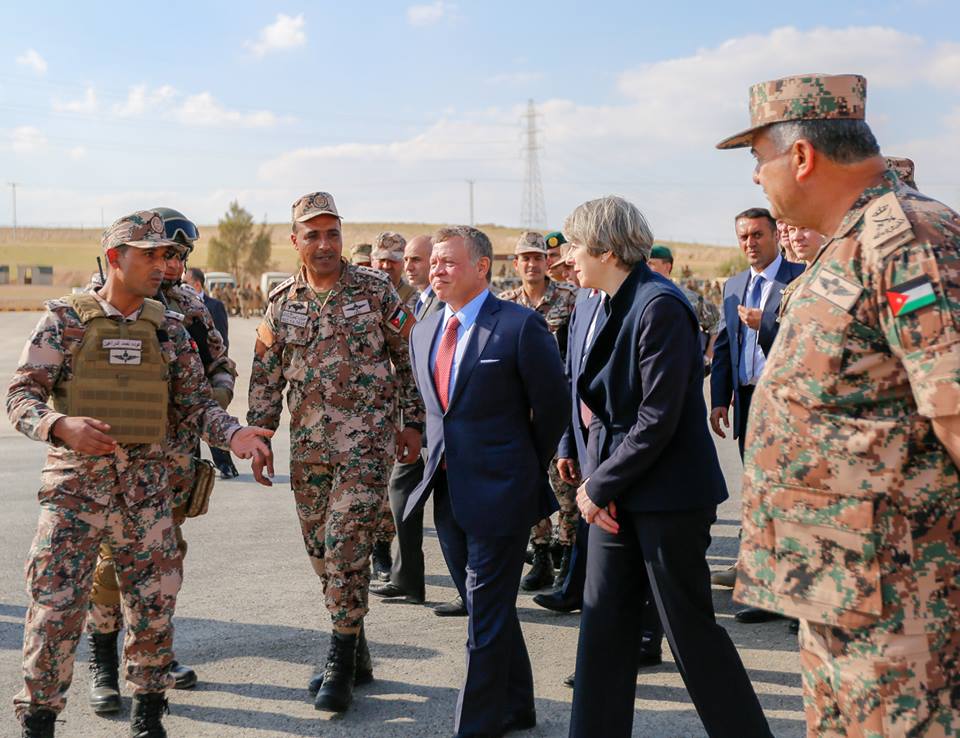 وزار جلالة الملك، القائد الأعلى للقوات المسلحة، ورئيسة الوزراء البريطانية تيريزا ماي، قيادة قوة رد الفعل السريع، بحضور رئيس هيئة الأركان المشتركة الفريق الركن محمود عبدالحليم فريحات وسمو الأمير فيصل بن الحسين.