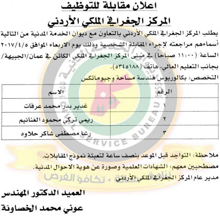 كما دعا المركز الجغرافي الملكي الأردني التالية أساؤهم من أجل اجراء المقابلة الشخصية: