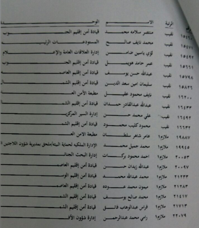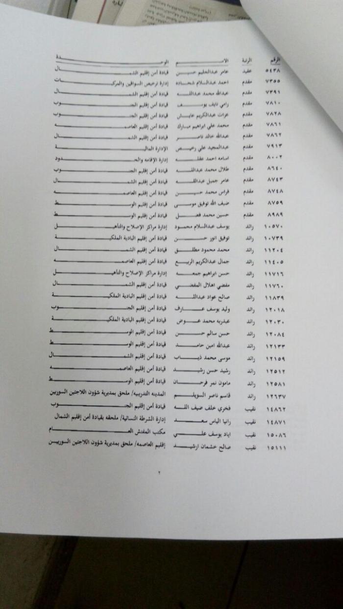 الإحالات الى التقاعد التي اجراها مدير الأمن العام مؤخرا حيث اعلن عن احالة كل من العميد عناد الركيبات والعميد علي الضمور والعميد عمر ابو حمور والعقيد ابراهيم الجبور والعقيد ناجي البطاينة والعقيد عامر قطيشات والعقيد احمد عبيدات.