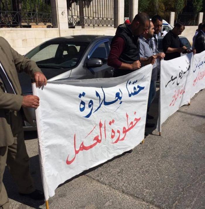 ورفع الموظفون المعتصمون يافطات كتبوا عليها: