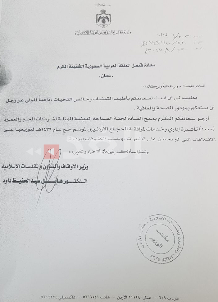 من جهته، قال أمين سر جميعة وكلاء السياحة والسفر الاردنية الناطق باسم لجنة السياحة الدينية، كمال أبو ذياب، إن اللجنة ترحب بفتح كافة الملفات التي أثارت الجدل مؤخرا بين وزارة الأوقاف وشركات العمرة، على رأس ذلك قضية تأشيرات الحج عام للعام 2015.