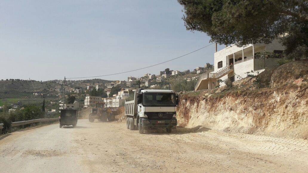 وكشف ابو زيتون عن تحديد وتعليم 85% من مسار الطريق على ارض الواقع وحصر 60% من المباني والاشجار والممتلكات ، واعمال حفر لفتح وتوسعة الشارع بلغت 50 الف متر مكعب ، واعمال طمم بلغت 5 الاف متر مكعب واعمال انشاء خطوط تصريف مياة امطار بطول 200 متر .