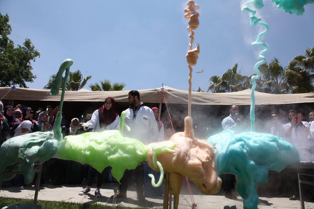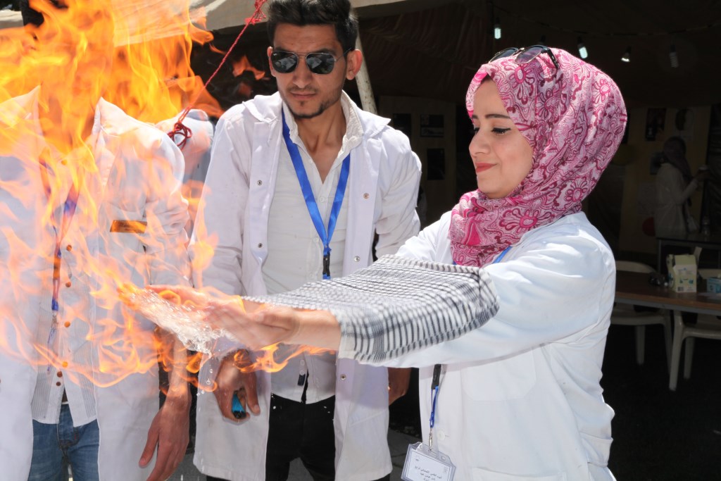 وبعد اكمال الامتحان توجه طلبة المدارس الى المسطح الاخضر في حرم الجامعة حيث قدم الدكتور عبدالمنعم الطويق ومجموعة من طلبة قسم الكيمياء في جامعة البترا عددا التجارب العلمية السحرية للمشاركين ثم تم عمل جولة تعريفية بمرافق جامعة البترا لجميع المشاركين.