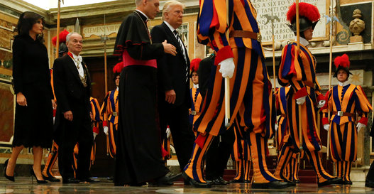 ويعتبر هذا أول لقاء ثنائي بينهما، وهو موضع ترقب شديد؛ نظراً لأنهما على طرفي نقيض في عدة مواضيع.ووصل ترامب، مساء الثلاثاء، إلى روما وحضر إلى الفاتيكان والتقى البابا بعد 11 دقيقة على وصوله.وبعد مصافحة ودية والتقاط الصور، بدأ اللقاء بينهما ويُرتقب أن يستمر 20 دقيقة بحضور مترجم.ولم يحضر الكثير من الأشخاص لانتظار مرور الموكب الرئاسي على الجادة الكبرى المؤدية إلى الفاتيكان والتي عبرها الموكب بصمت كبير.وهذه الزيارة هي المحطة الثالثة في رحلة ترامب الأولى إلى الخارج التي قادته إلى السعودية وإسرائيل والأراضي الفلسطينية وسيتابعها إلى بروكسل لعقد قمة مع قادة حلف الأطلسي وإلى صقلية حيث يحضر قمة مجموعة السبع.
