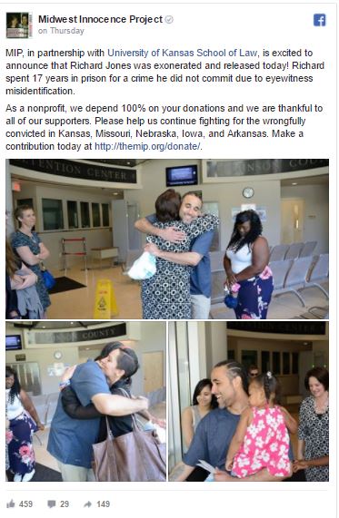 ونتيجة لذلك، أصدر كيفين موريارتي، قاضي مقاطعة جونسون كاونتي أمراً بالإفراج عن ريتشارد جونز في 8 حزيران 2017، حسب ما ذكرته صحيفة كنساس سيتي ستار المحلية.