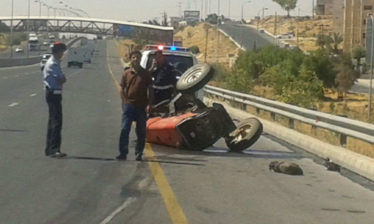 وفاة وإصابتان بحادث مروع على طريق المطار (صور)