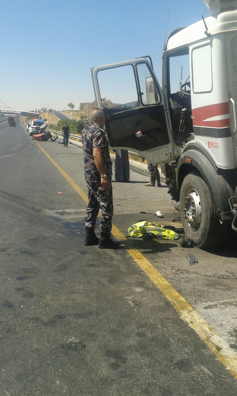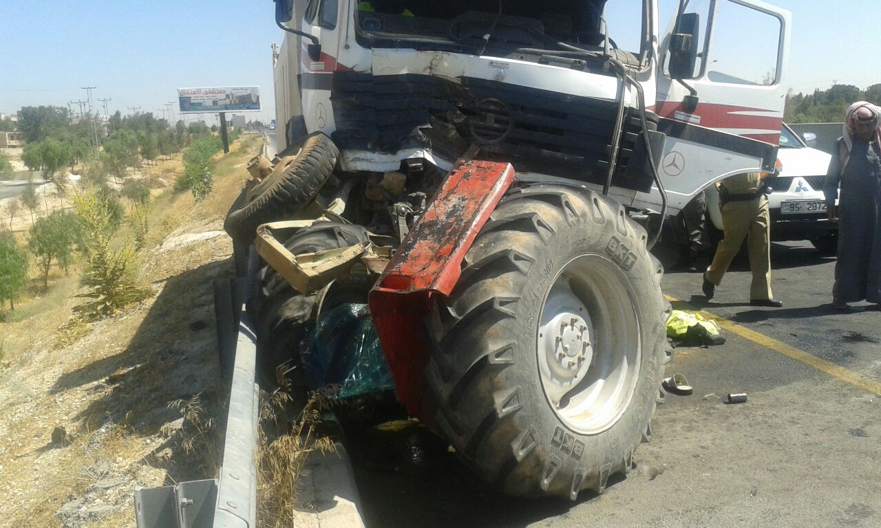 توفي شخص وأصيب اثنان آخران بحادث تصادم وقع صباح اليوم السبت بين تريلا وتركتور زراعي على طريق المطار.