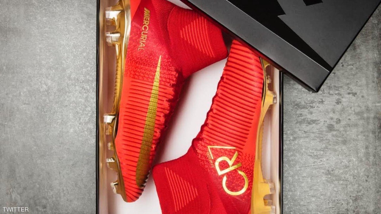 الصورة أوضحت أن الحذاء سيكون لونه أحمر مع لمسة خفيفة من اللون الذهبي، فيما طبع على جانبه شعار اللاعب الشهير CR7.