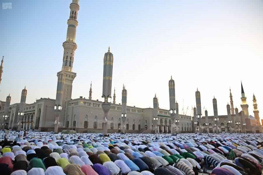 أدى أكثر من مليون مصل من مواطنين ومقيمين وزوار ومعتمرين، الأحد، صلاة عيد الفطر المبارك لهذا العام في المسجد النبوي.