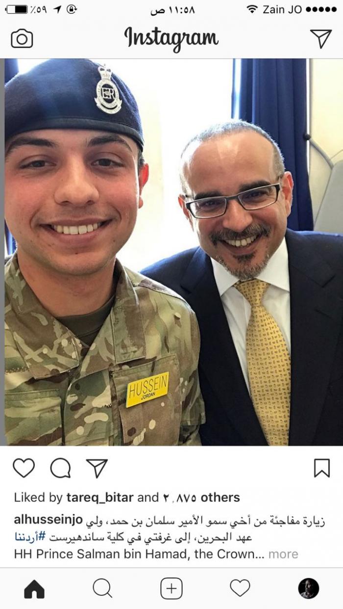 ونشر سمو الأمیر الحسین بن عبد الله صورة له مع ولي عھد البحرين عبر حسابه على الانستغرام، قائلا: زيارة