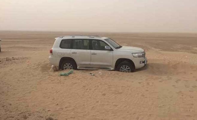 أعلن فريق "عون" للبحث والإنقاذ، السبت، العثور على جثتي الأب الكويتي وابنه في صحراء حفر_الباطن بسبب انطماس (تغريز) سيارتهما بالرمال وارتفاع درجات الحرارة، ما أدى إلى وفاتهما عطشاً حسب العربية.نت .