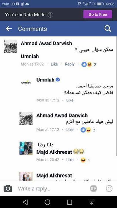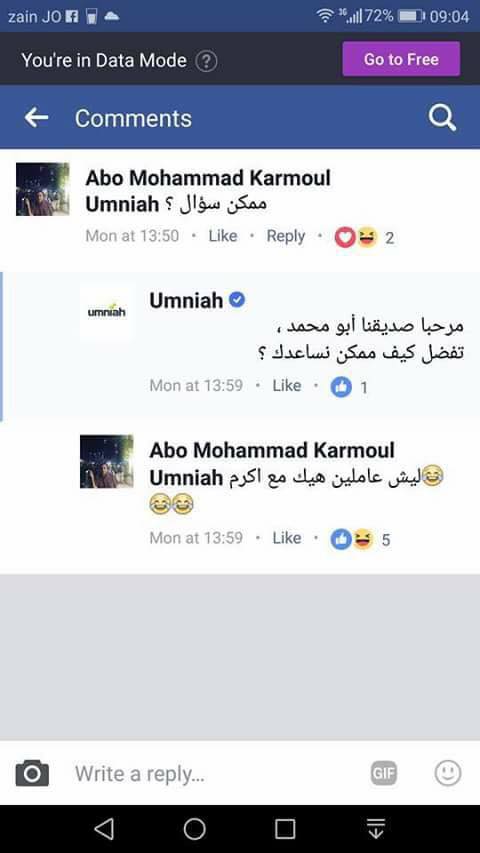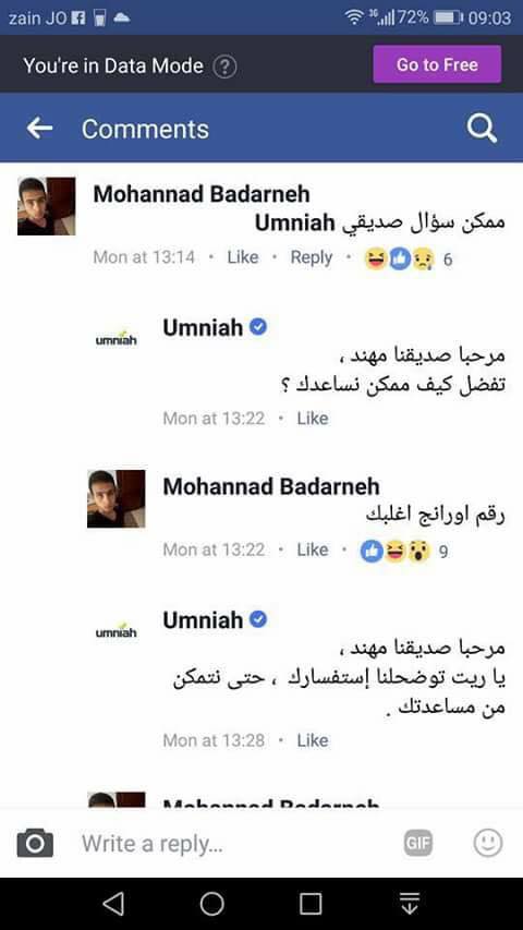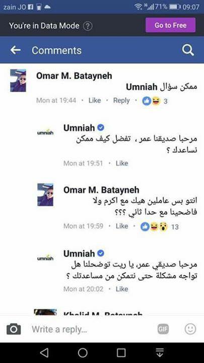 وختم اكرم منشوره بأنه يريد معرفة الطريقة لالغاء اشتراكه مع شركة امنية دون دفع غرامة مالية، طالبا عدم وضع الرد المعتاد لهم عبر فيسبوك .