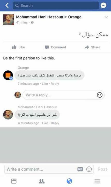 رصد - كتب اكرم محمد احد مستخدمي خدمة الانترنت من شركة امنية منشور على صفحة شركة امنية على فيسبوك.
