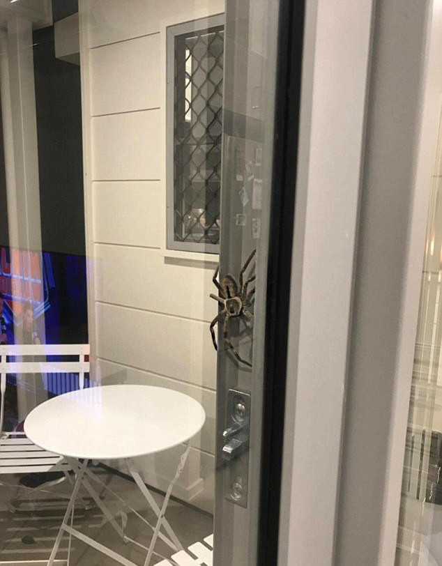 وشاهدت العائلة العنكبوت وهو يتسلق الباب الخلفي المطل على حديقة المنزل في الوقت الذي كانت فيه الزوجة تطهو بعض الطعام في المطبخ، حيث كان العنكبوت -لحسن حظهم- على الجهة الخارجية من المنزل وليس بداخله.