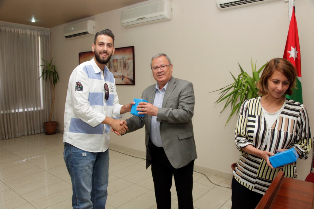 حيث قام المولا. بتوزيع الهدايا التقديرية على الطلبة بحضور الدكتورة سهير الجاغوب ، عميد كلية العلوم الادارية و المالية و د. خلف البقاعين ، رئيس قسم العلوم المالية والمصرفية وعدد من أعضاء الهيئة التدريسية و الإدارية في الكلية ، و هنأ المولا الطلبة و أعضاء الهيئة التدريسية على انجازهم الكبير. متمنياً لهم الاستمرار و الحفاظ على هذا الانجاز . وأشار الى سعي جامعة البترا الدؤوب نحو التميز و التقدم على كافة الاصعدة . وأن تكون جامعة البترا الخيار الافضل للعلماء و المتعلمين في المنطقة.