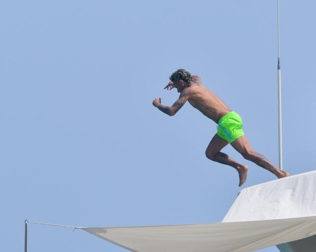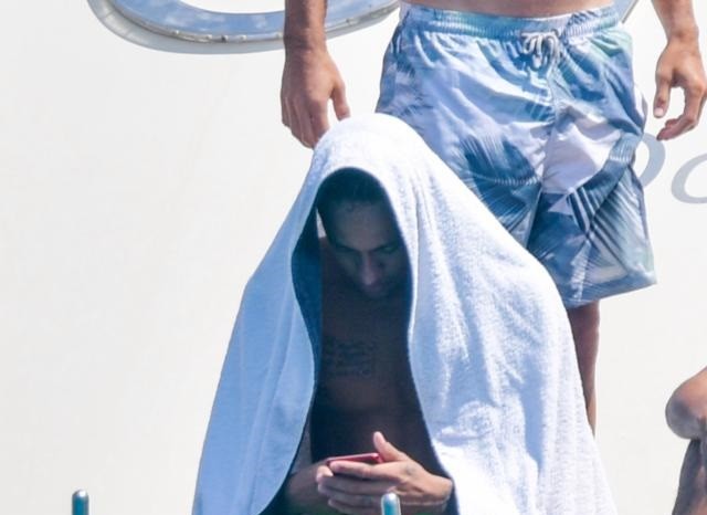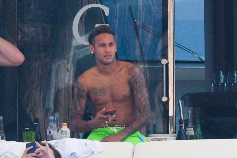 شوهد النجم البرازيلي نيمار المنتقل حديثاً الى باريس سان جيرمان الفرنسي، يستجمّ برفقة عدد من أصدقائه على شاطىء سان تروبيه جنوب فرنسا.