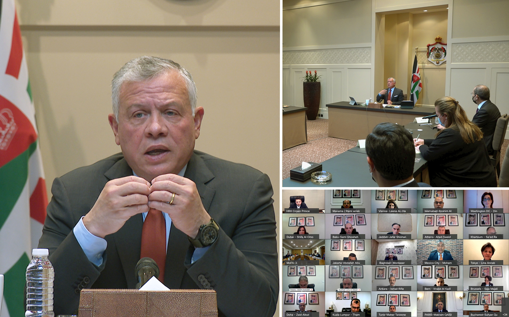 اجتمع الملك عبدالله الثاني عبر اتصال مرئي، بحضور الأمير الحسين بن عبدالله الثاني ولي العهد، برؤساء البعثات الدبلوماسية الأردنية. |