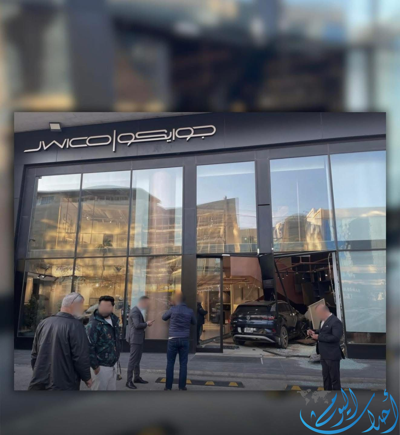 | مركبة تقتحم واجهة معرض "جوايكو" في عمان |