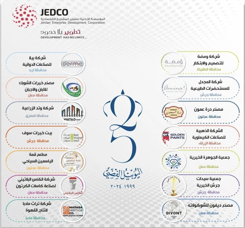 اعلنت المؤسسة الاردنية لتطوير المشاريع الاقتصادية “جيدكو” اسماء الشركات والمشاريع الانتاجية التي تشرفت بنيلها “ميدالية اليوبيل” من جلالة الملك عبدالله الثاني في اطار... |