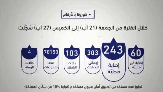 | الحكومة: تسجيل 303 اصابات بكورونا خلال اسبوع |