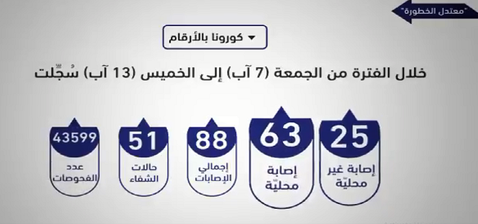 | 63 إصابة محلية بكورونا خلال اسبوع - ارقام |