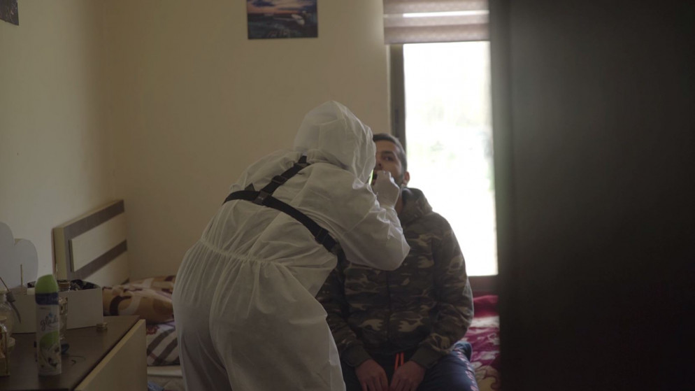 | عزل منزل مصاب كورونا بإربد وجمع 300 عينة لمخالطين |