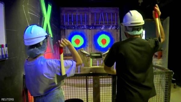 | رمي الفؤوس .. لعبة أردنية جديدة للترويح عن النفس |