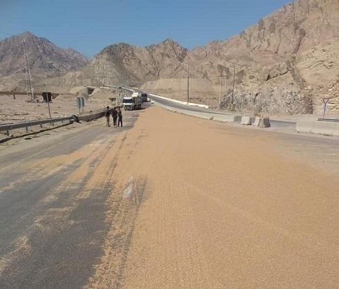 | انسكاب حمولة قمح في شارع بالعقبة |
