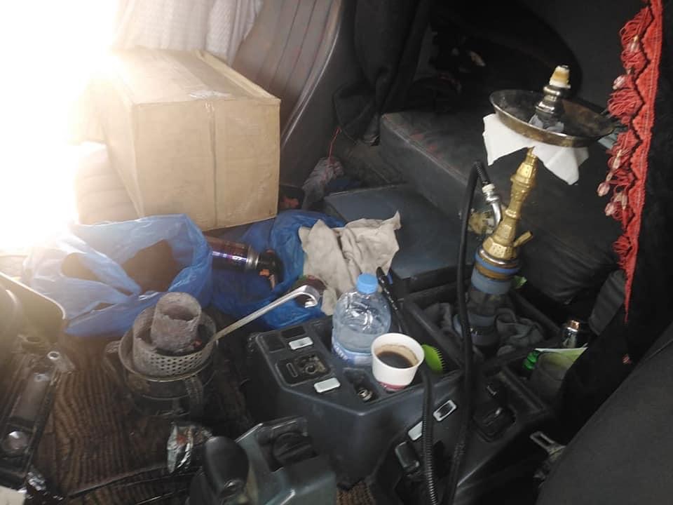 | ضبط سائق تريلا يدخن الأرجيلة اثناء القيادة على الصحراوي |