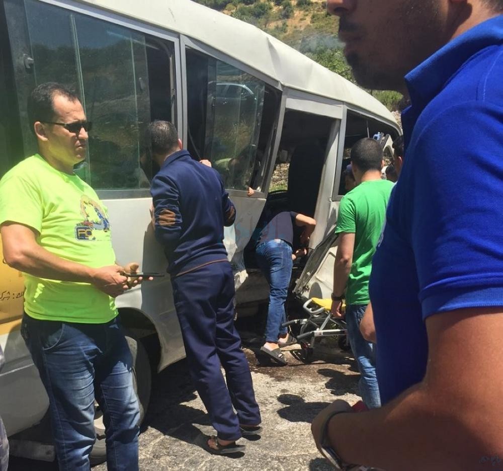 اصيب الخميس 12 شخصا نتيجة حادث تصادم وقع بين باص كوستر نقل عام وعدد من المركبات على مثلث عين التيس بمحافظة عجلون.وحسب يومية الرأي قالت مصادر في مديرية الدفاع المدني للرأي... |