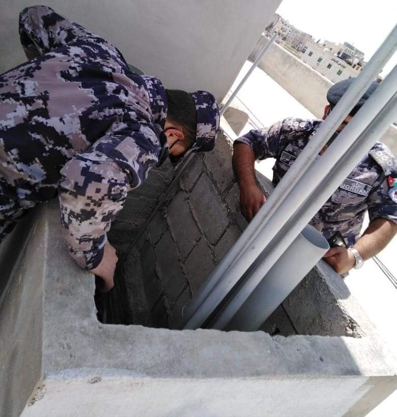 | انقاذ طفل علق داخل منور لإحدى العمارات بإربد |