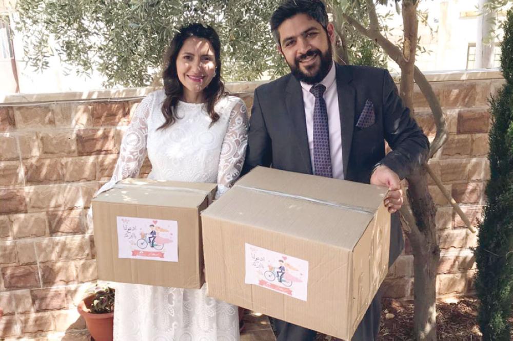 | الأردن .. عروسين يبدلان مصاريف زفافهما بتوزيع طرود الخير |