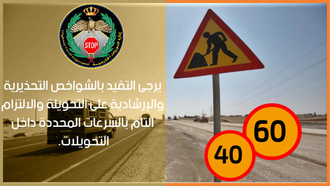 دعت إدارة الدوريات الخارجية التابعة لمديرية الأمن العام مرتادي الطريق الصحراوي إلى الالتزام بالسرعة المحددة ضمن جميع تحويلات الطريق الصحراوي وهي (60 )كم/ساعه.وطالبت الإدارة... |