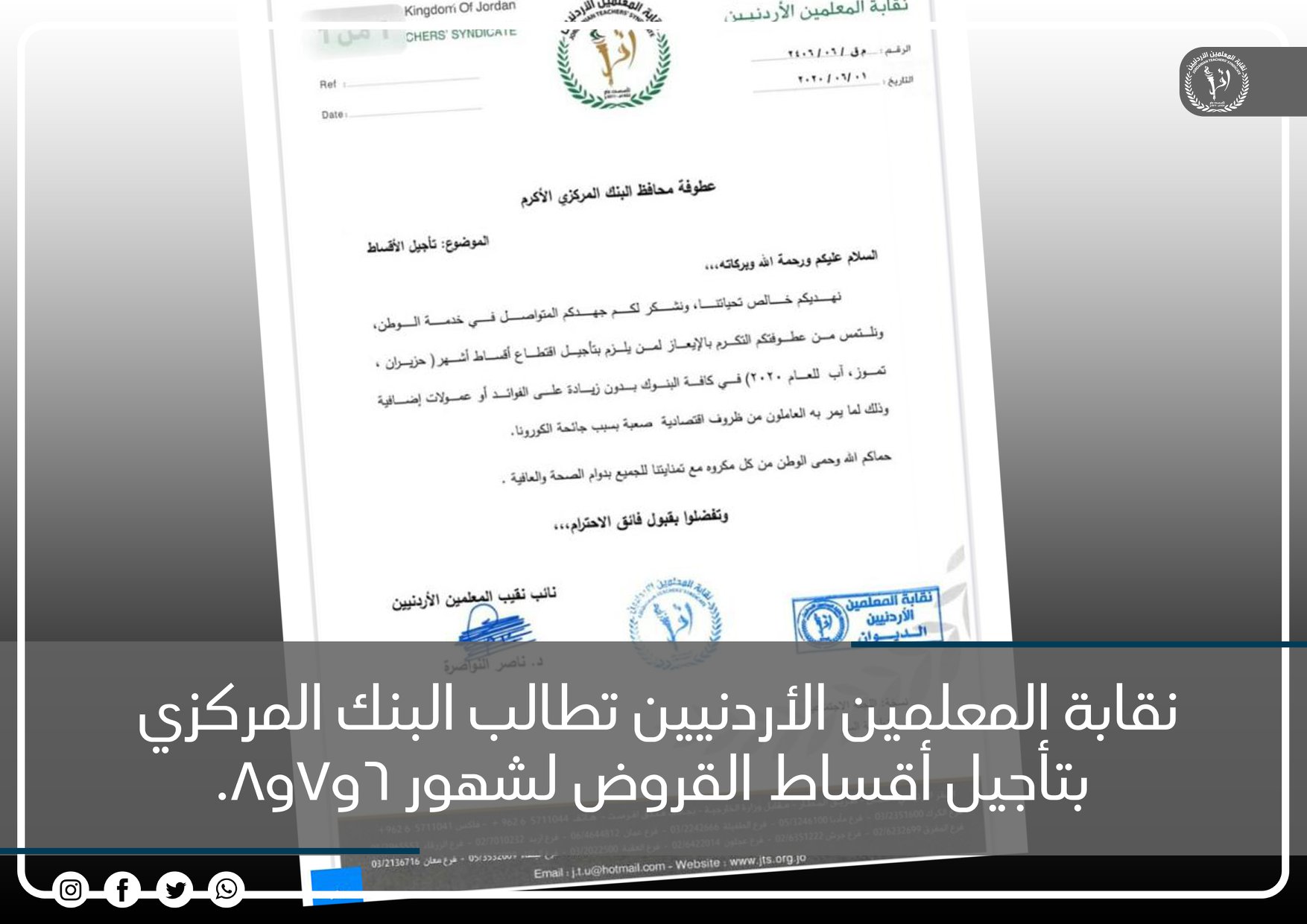 | المعلمين تطالب البنوك بتأجيل اقساط القروض |