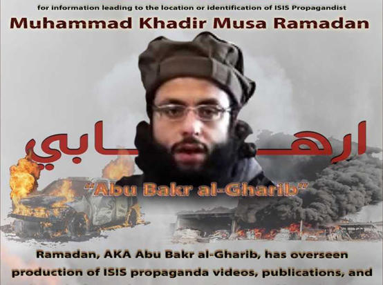 رصدت وزارة الخارجية الأمريكية، الخميس، مكافأة قدرها 3 ملايين دولار لمن يدلي بمعلومات عن القيادي بتنظيم داعش الإرهابي، محمد خضر موسى رمضان، المكني بـأبو بكر الغريب.جاء ذلك... |