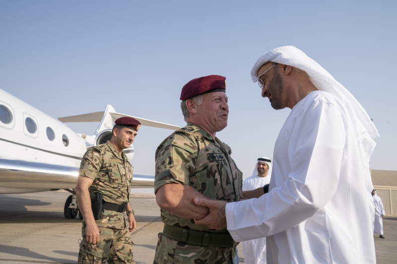 تبادل الملك عبدالله الثاني التهاني مع محمد بن زايد آل نهيان، ولي عهد أبوظبي، نائب القائد الأعلى للقوات المسلحة في دولة الإمارات العربية المتحدة الشقيقة، بمناسبة قرب حلول... |